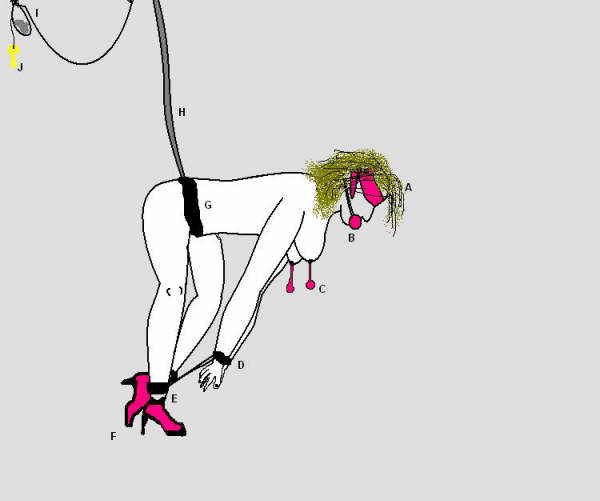 D: Это наручники на руки соединенные с другими на ногах E. Удостоверьтесь что у вас есть немного движения для того чтобы поднять ключ, когда он упадет вниз.